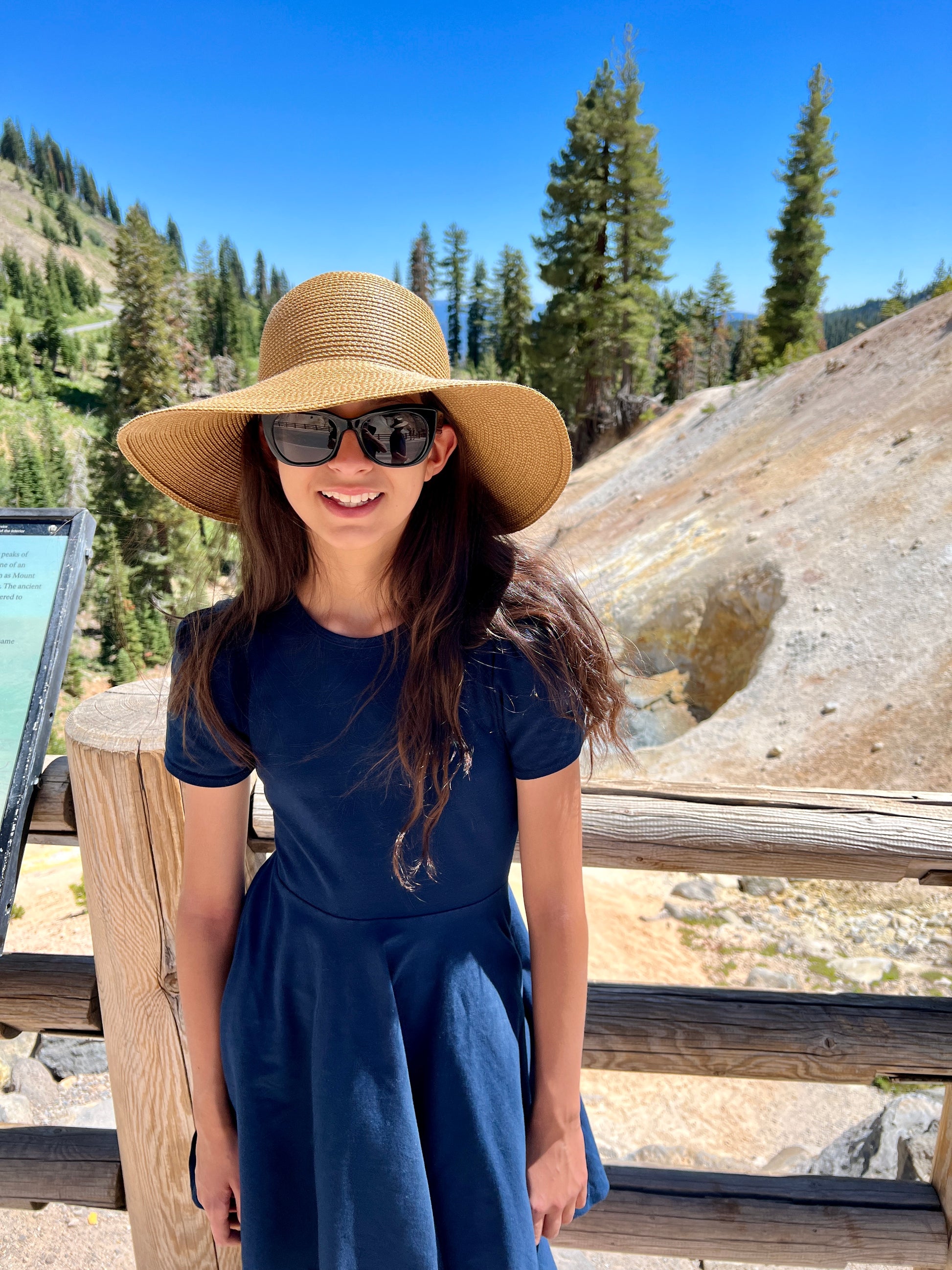 Our Audrey Girl's Dress is a fit and flare jersey dress designed to be flattering and classic. The fabric is soft, the dress features an A-line skirt with pockets and the top has slight puff sleeves for a touch of feminity.