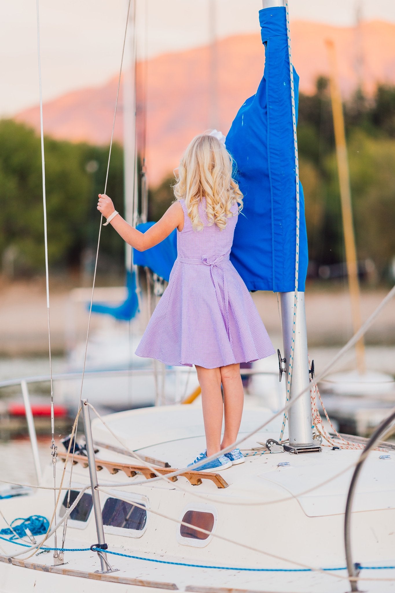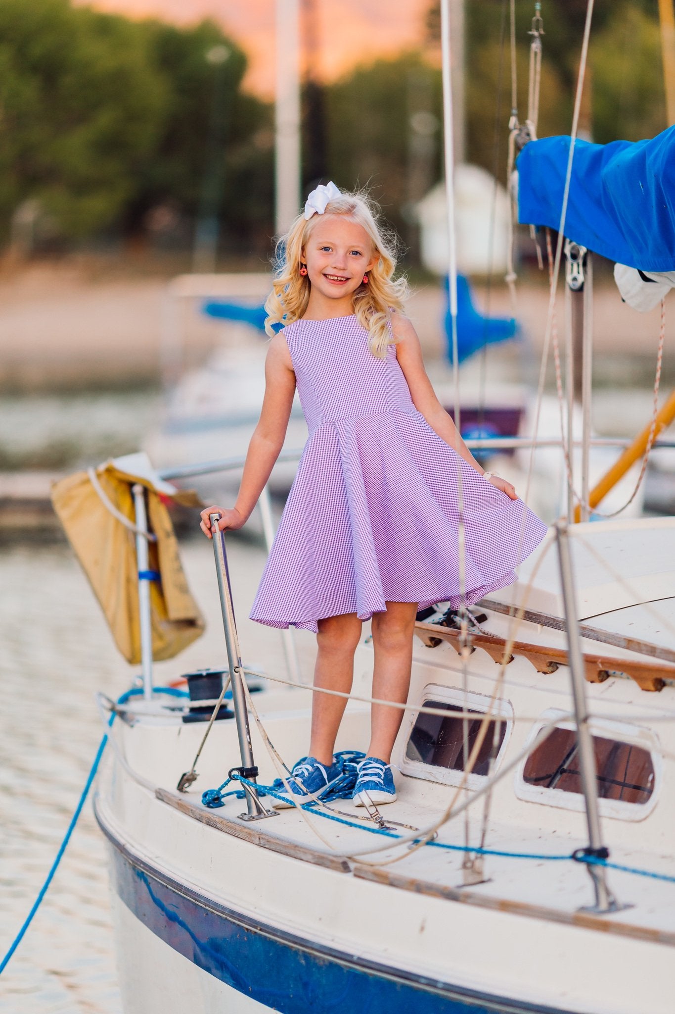 The Go Anywhere Dress: a classic girl's summer dress in pink seersucker