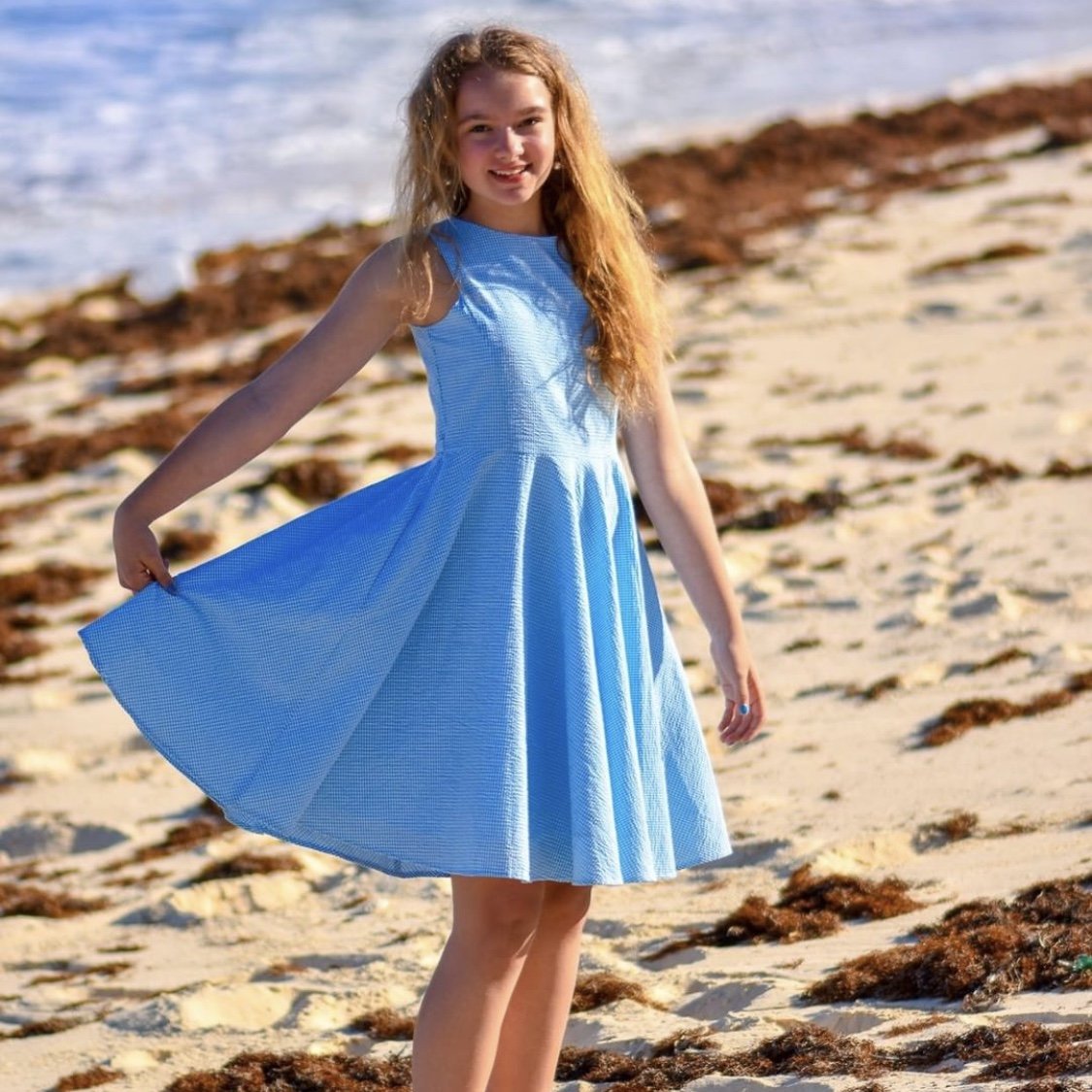 The perfect mix of sweet and sturdy, seersucker is one of our favorite fabrics to work with for spring and summer. This classic fit and flare beauty packs light and washes easily.