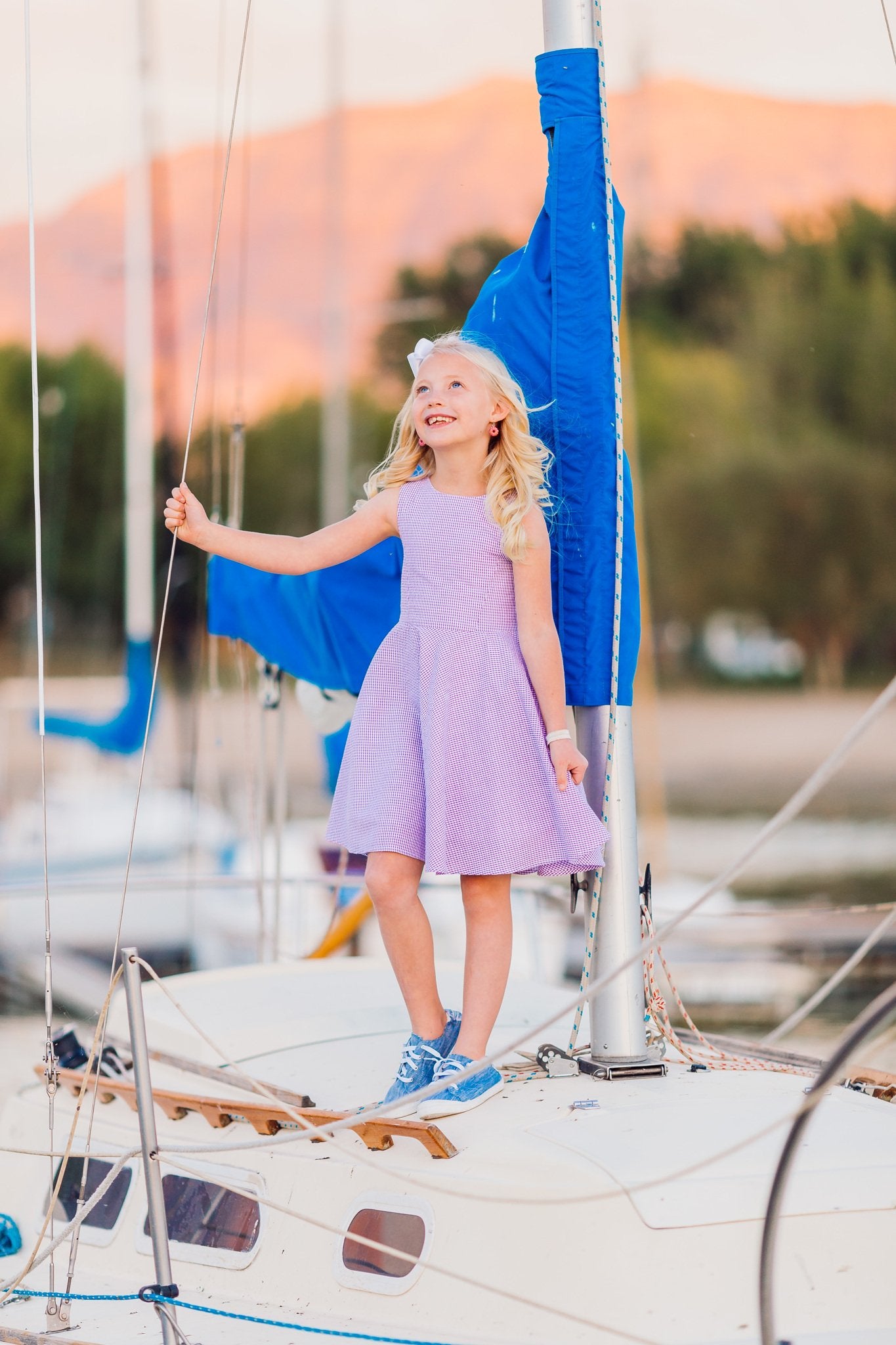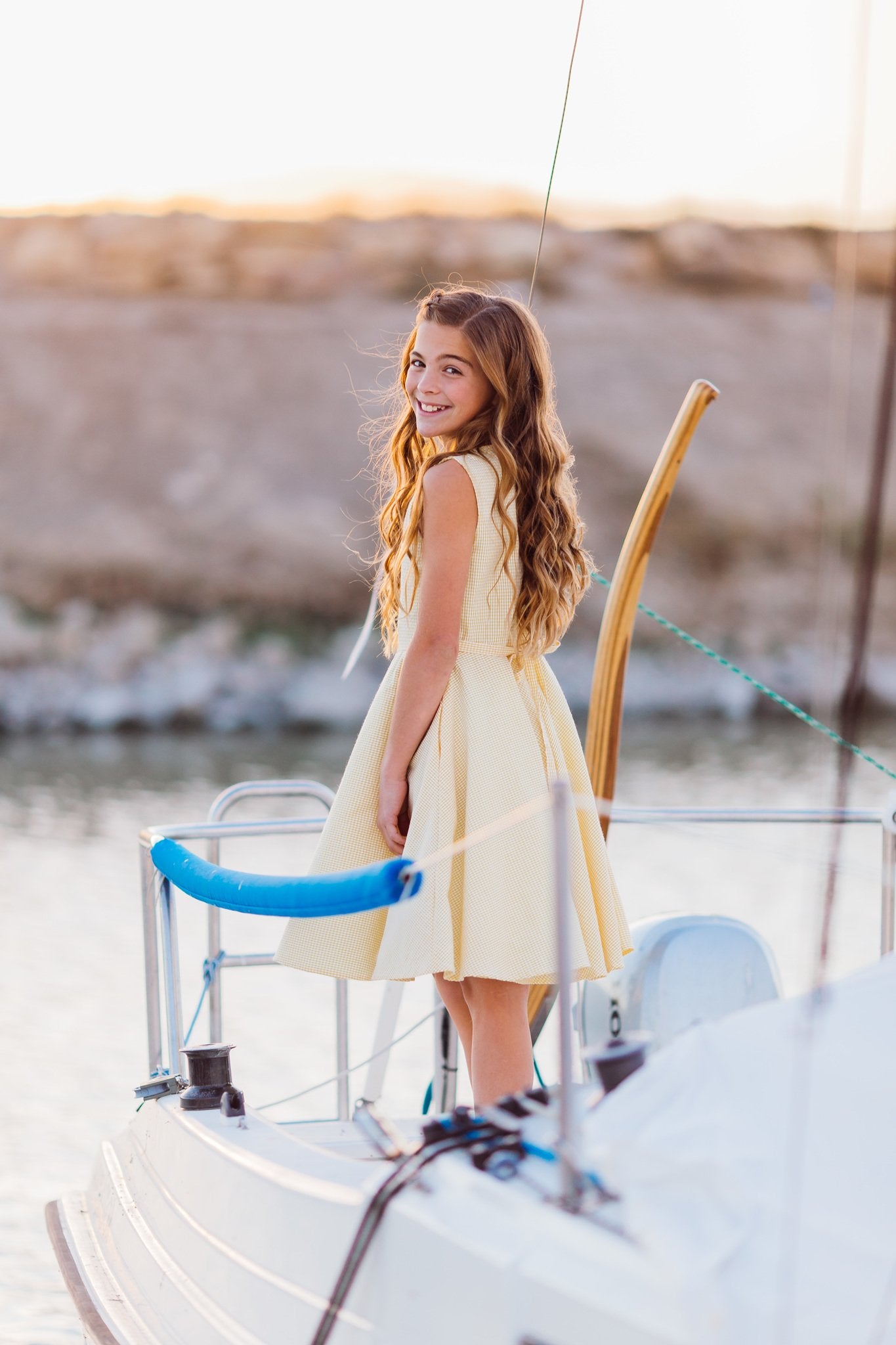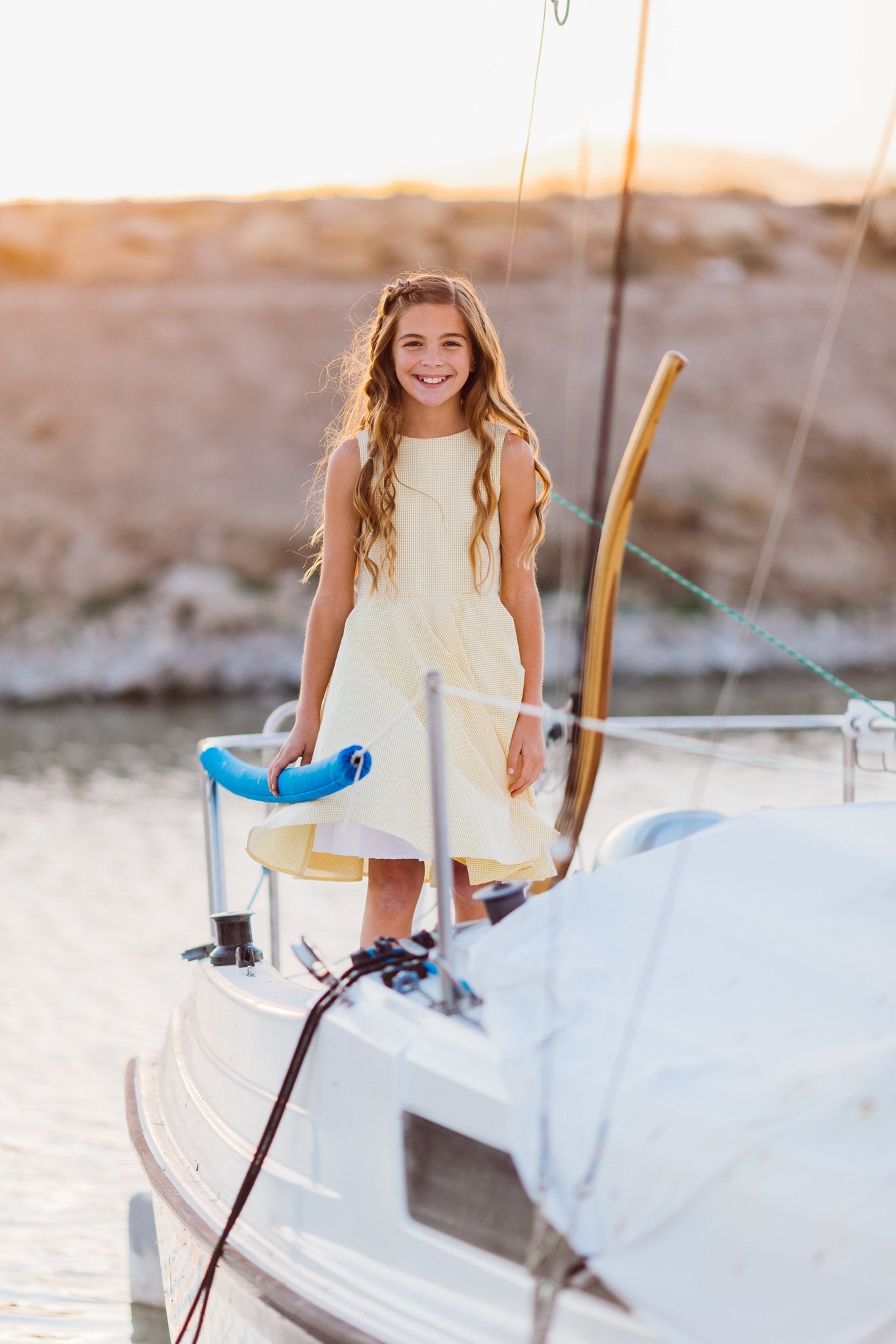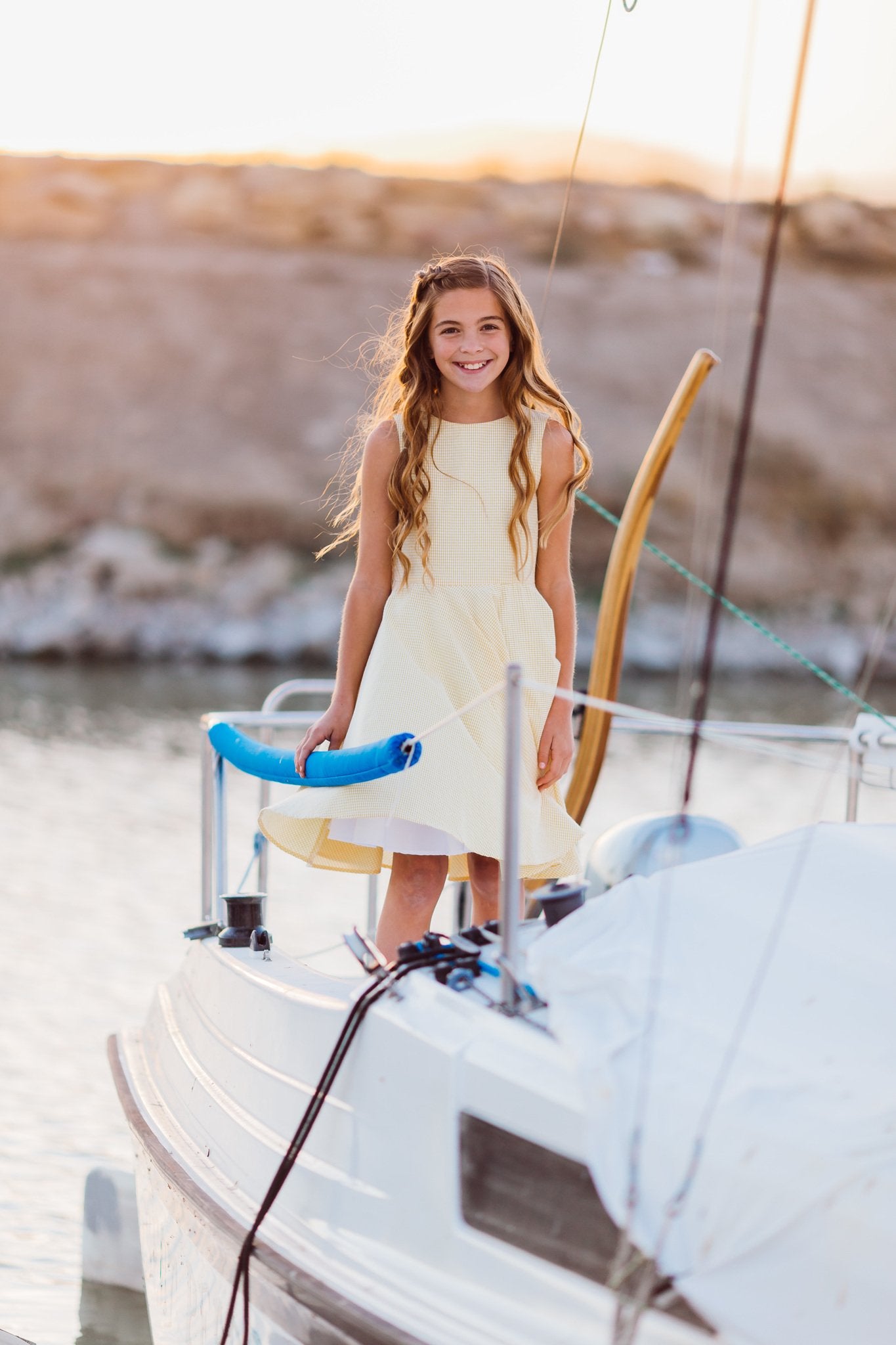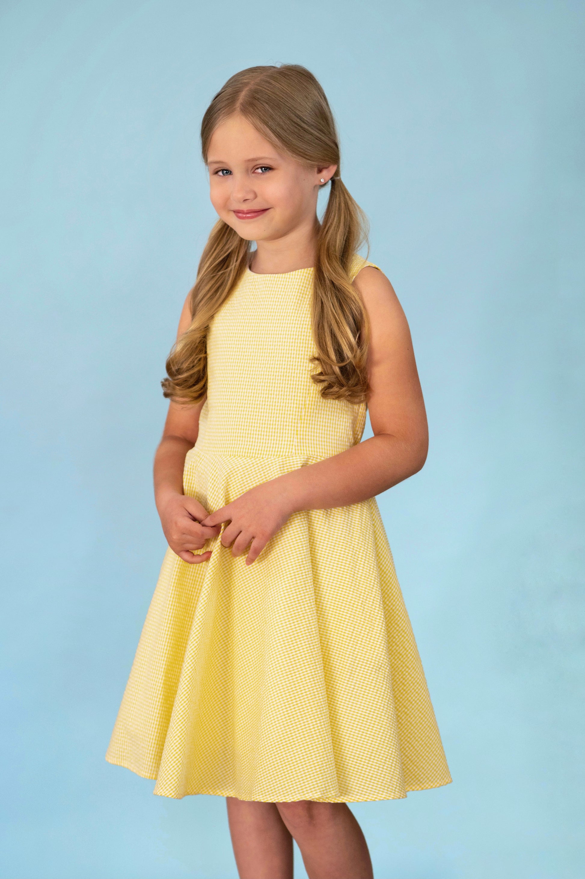 The Go Anywhere Dress: a classic girl's summer dress in yellow seersucker