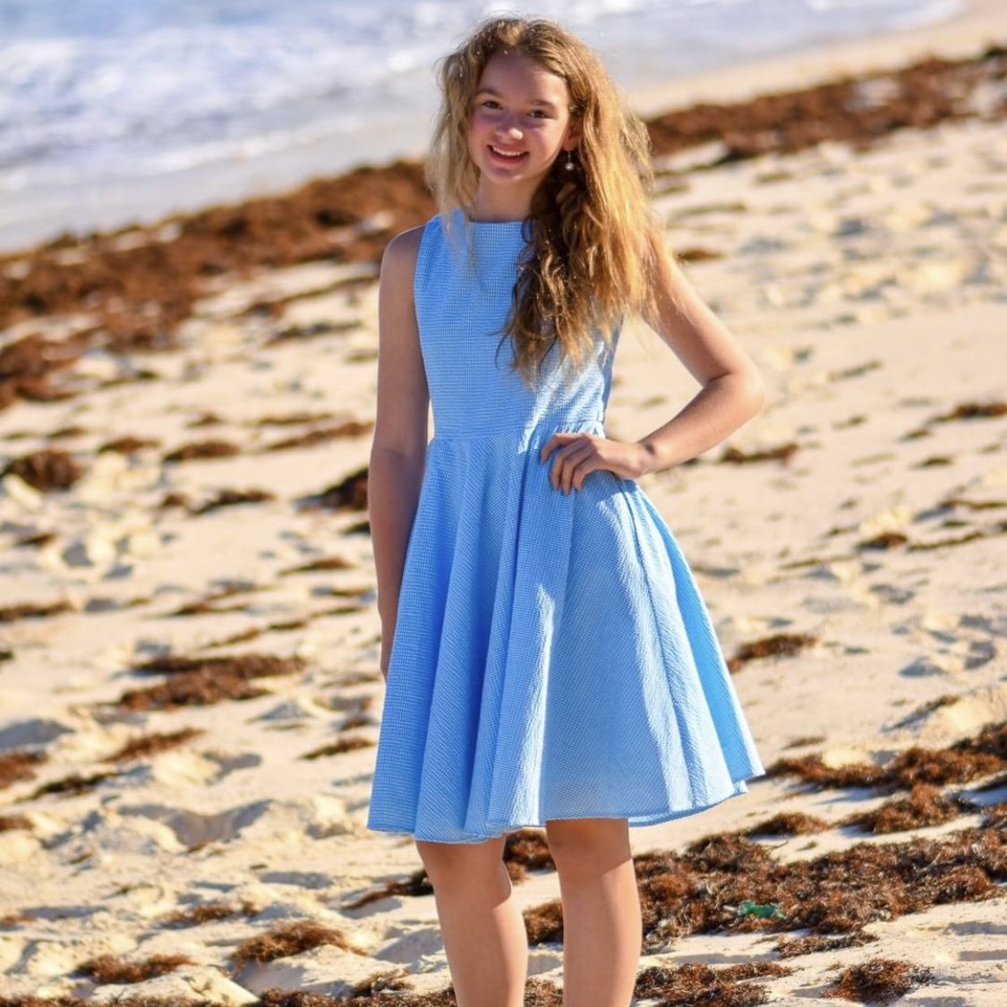 The perfect mix of sweet and sturdy, seersucker is one of our favorite fabrics to work with for spring and summer. This classic fit and flare beauty packs light and washes easily.