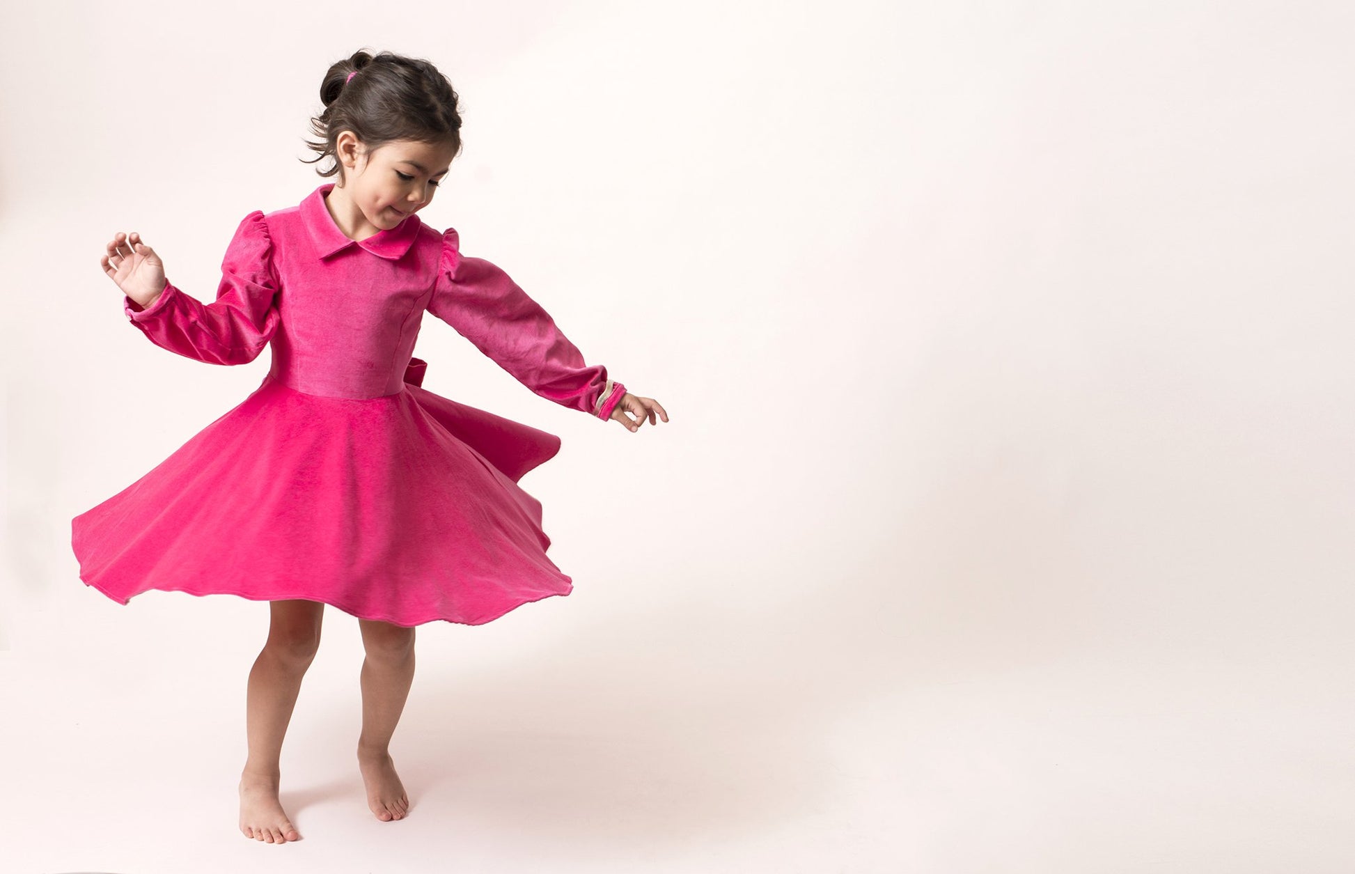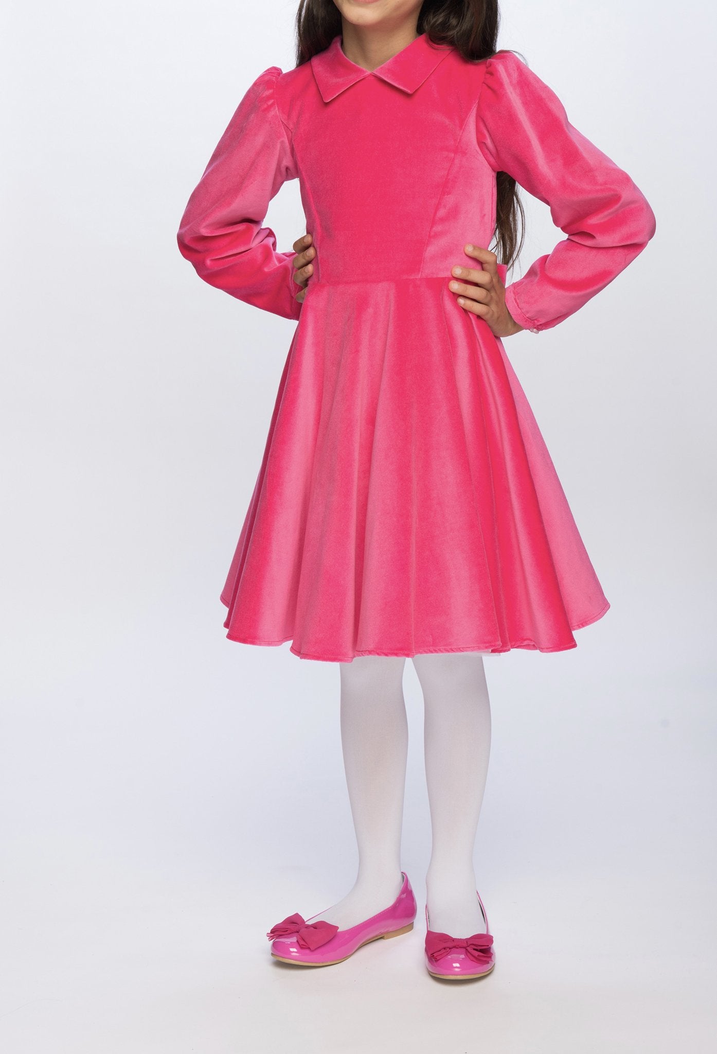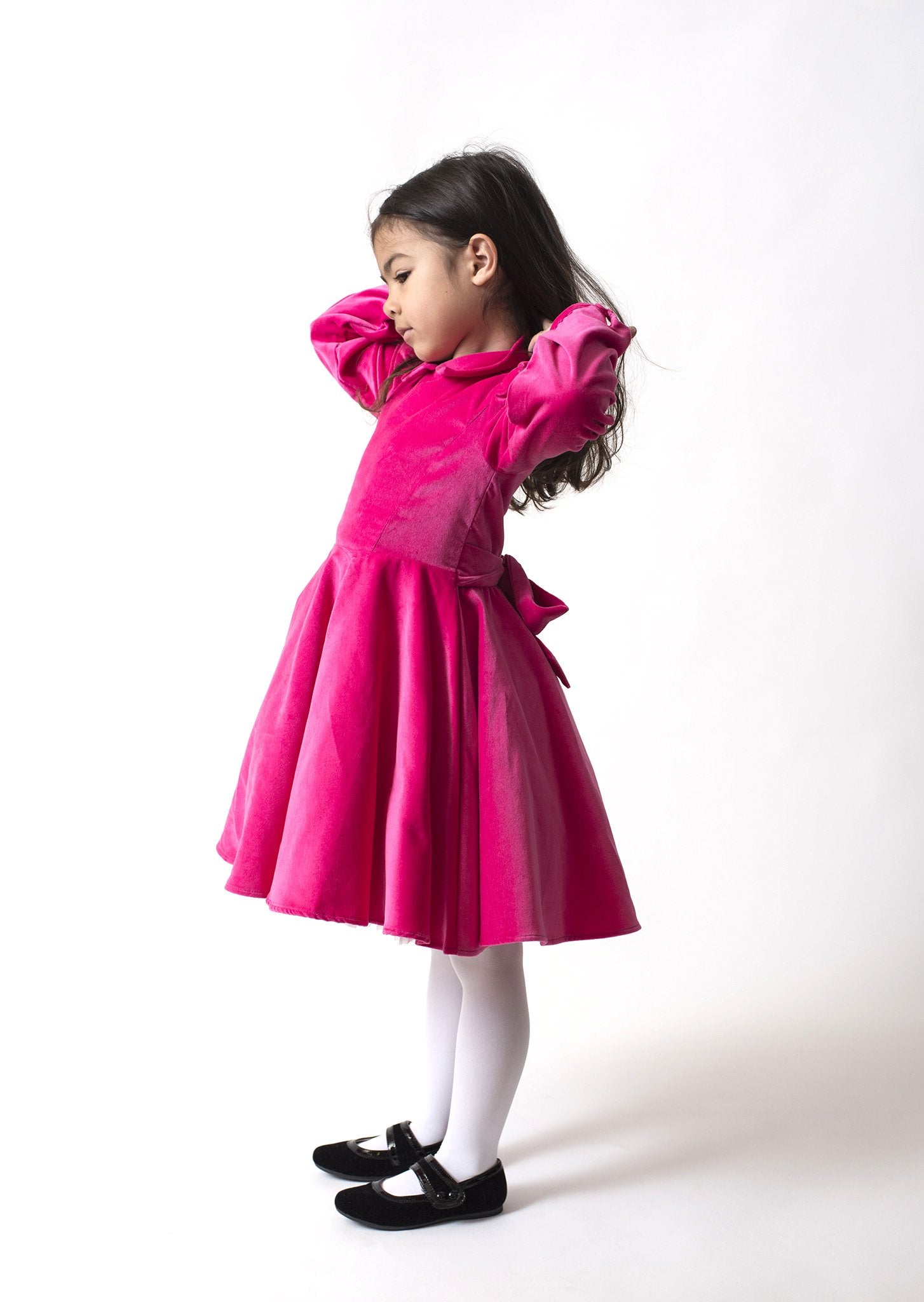 This stunning pink velvet twirling girl's party dress will be your go-to for special occasions.