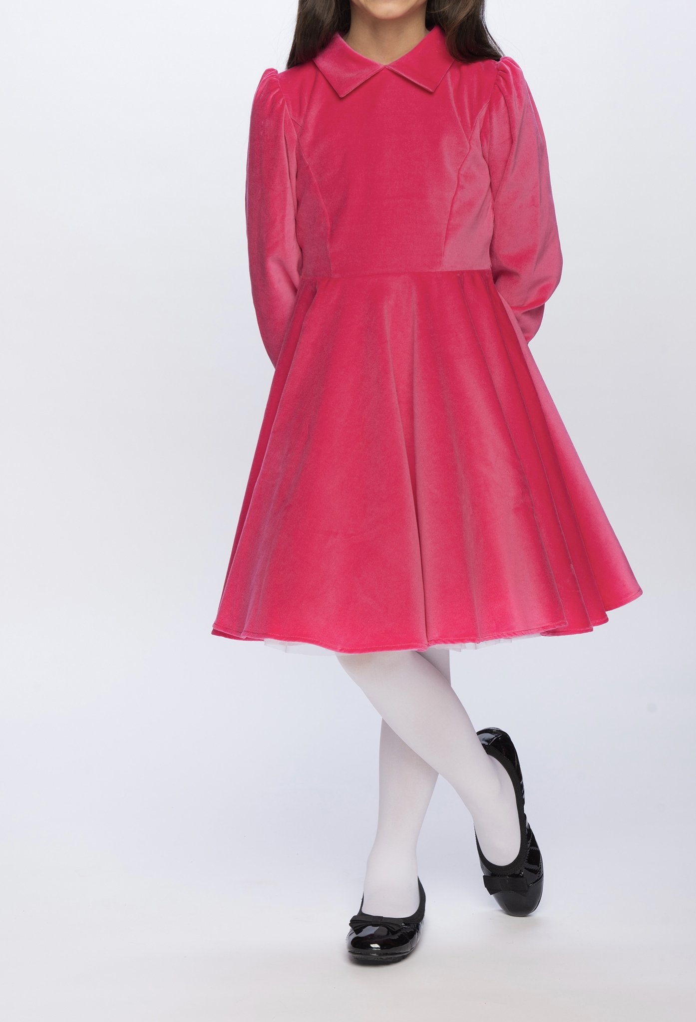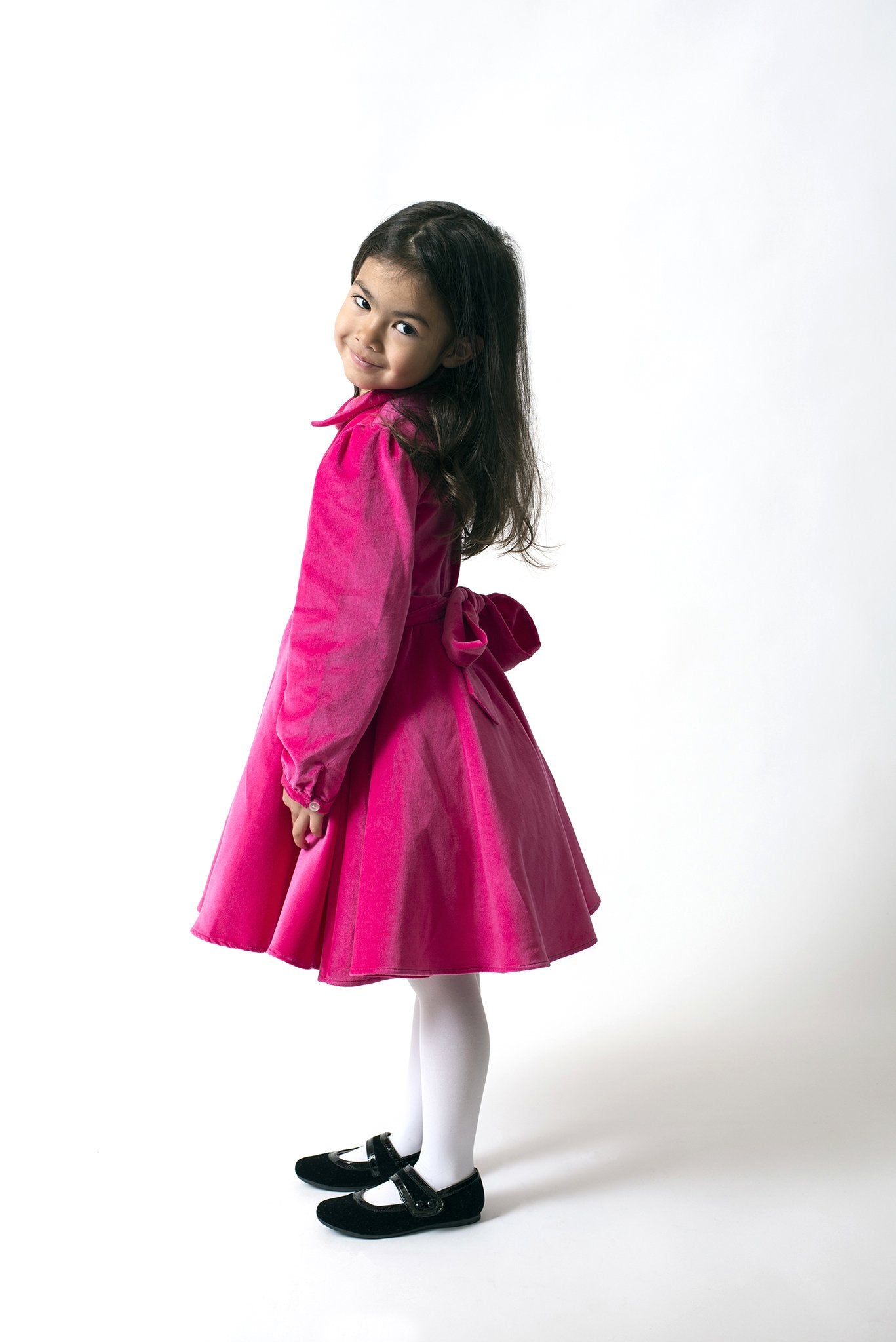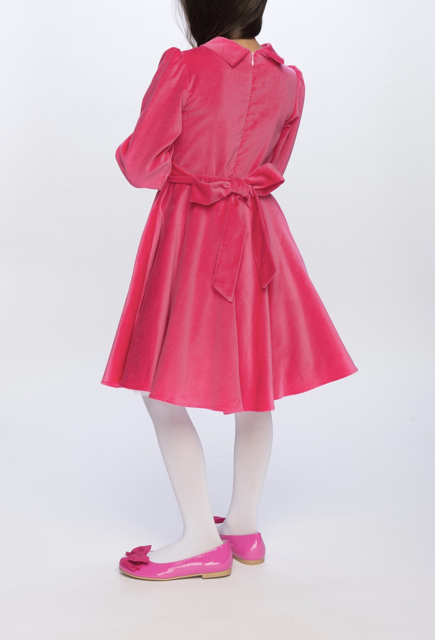 The perfect party dress, our fabulous pink velvet girl's dress will make her feel glamorous on those special school days, at holiday celebrations, or any other "royal gathering" you might be attending this winter season.