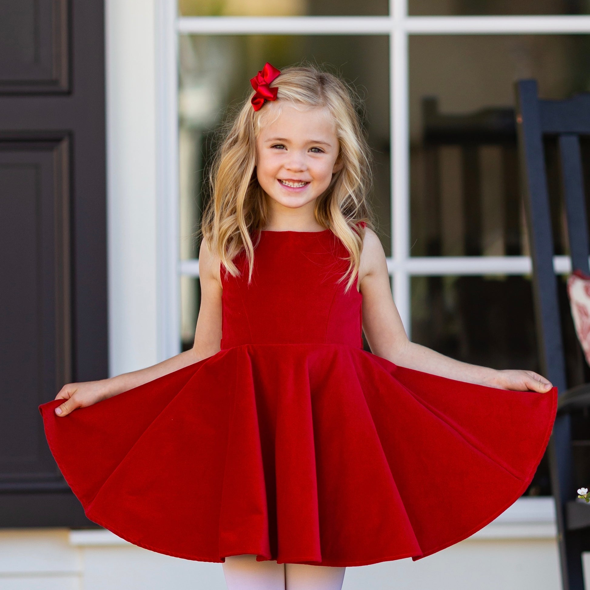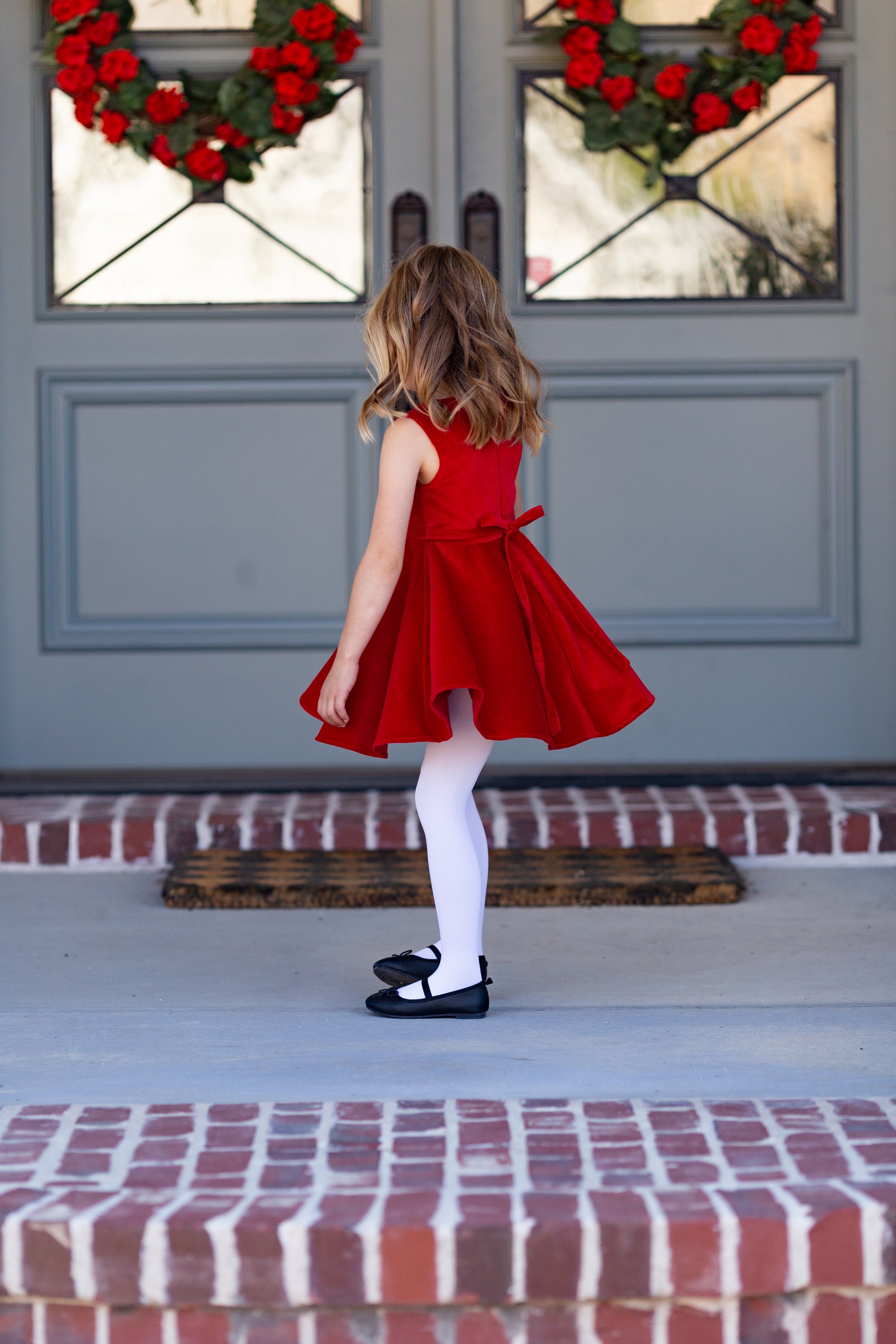 Girls love this classic flattering red velvet dress. It's the perfect party dress for any occasion or especially brilliant as a junior bridesmaid dress. Our "Special Occasion Dress" is fun and easy to dress up or down.