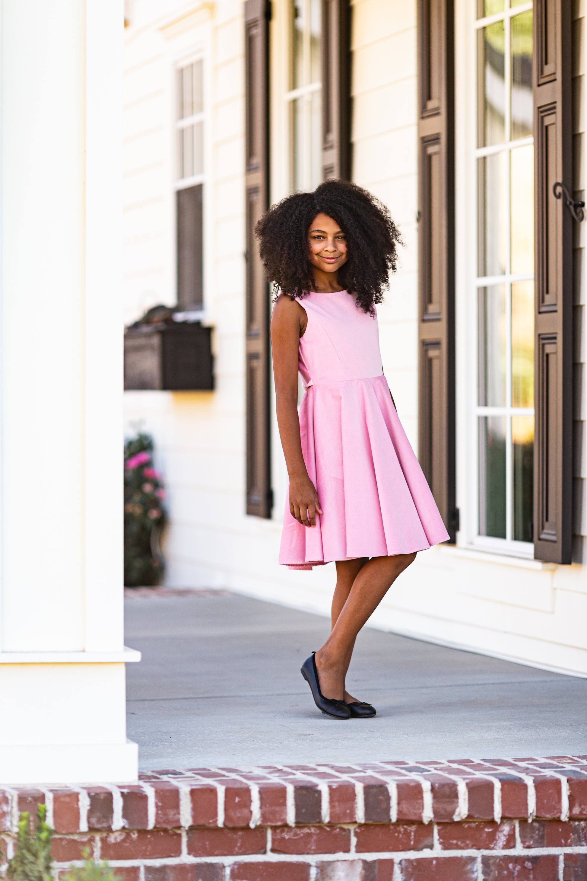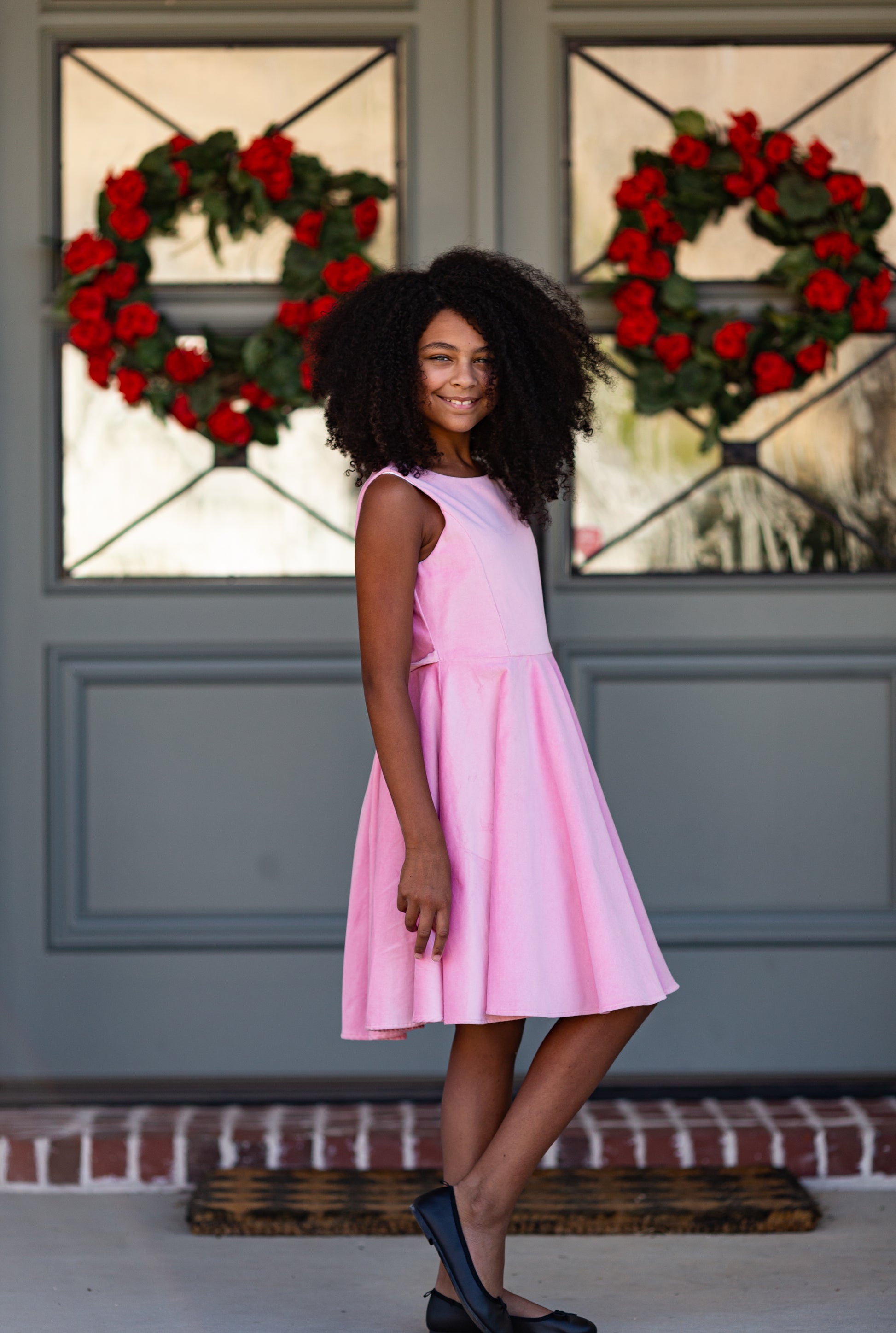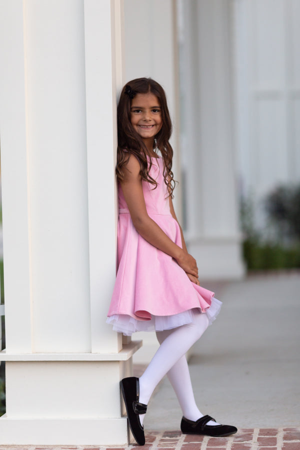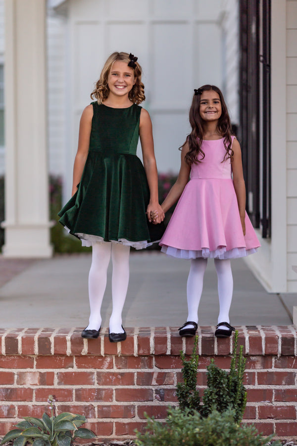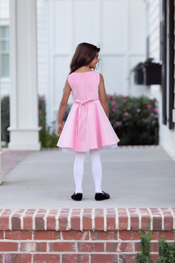 Girls love this classic flattering light pink velvet dress. It's the perfect party dress for any occasion or especially brilliant as a junior bridesmaid dress. Our "Special Occasion Dress" is fun and easy to dress up or down.