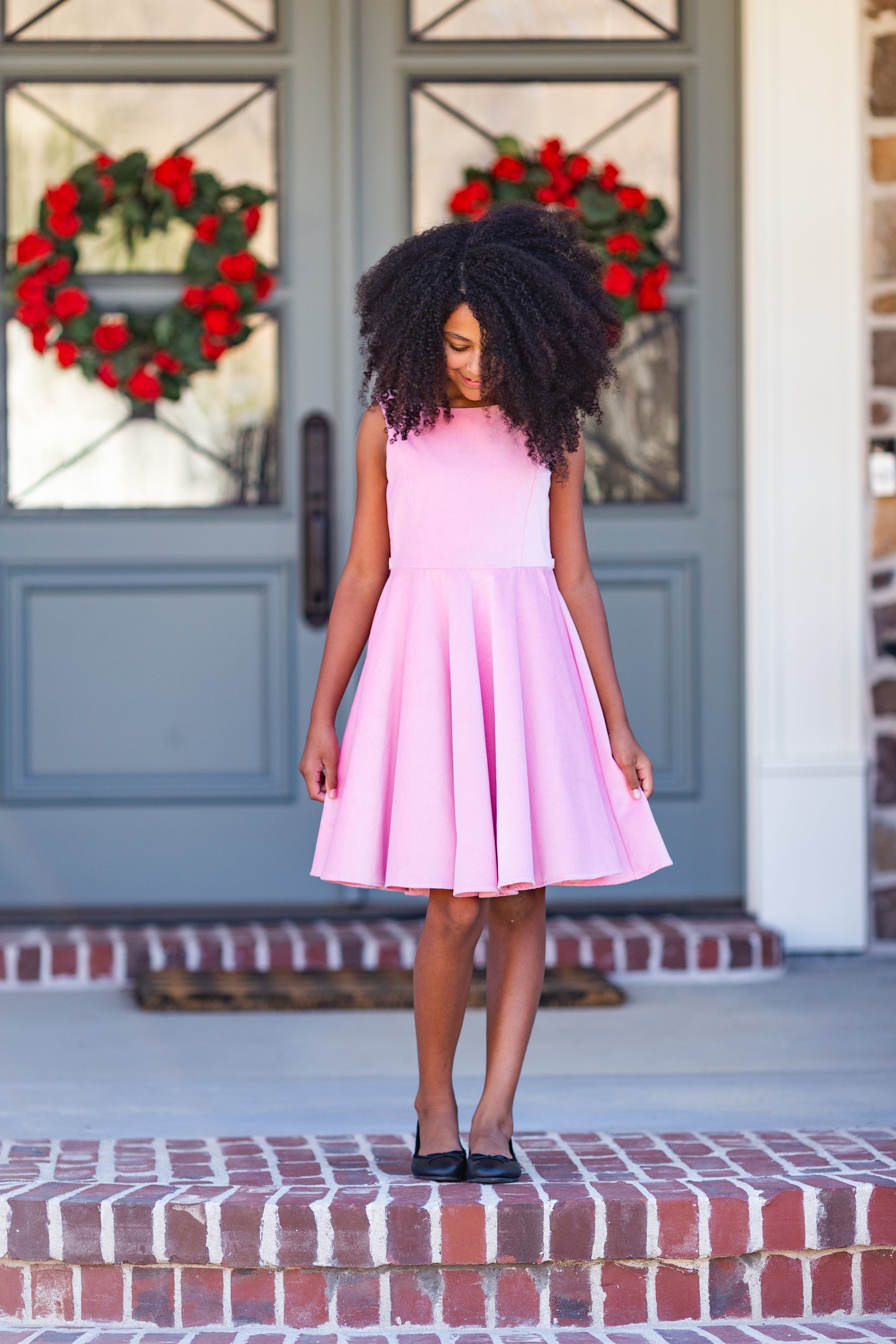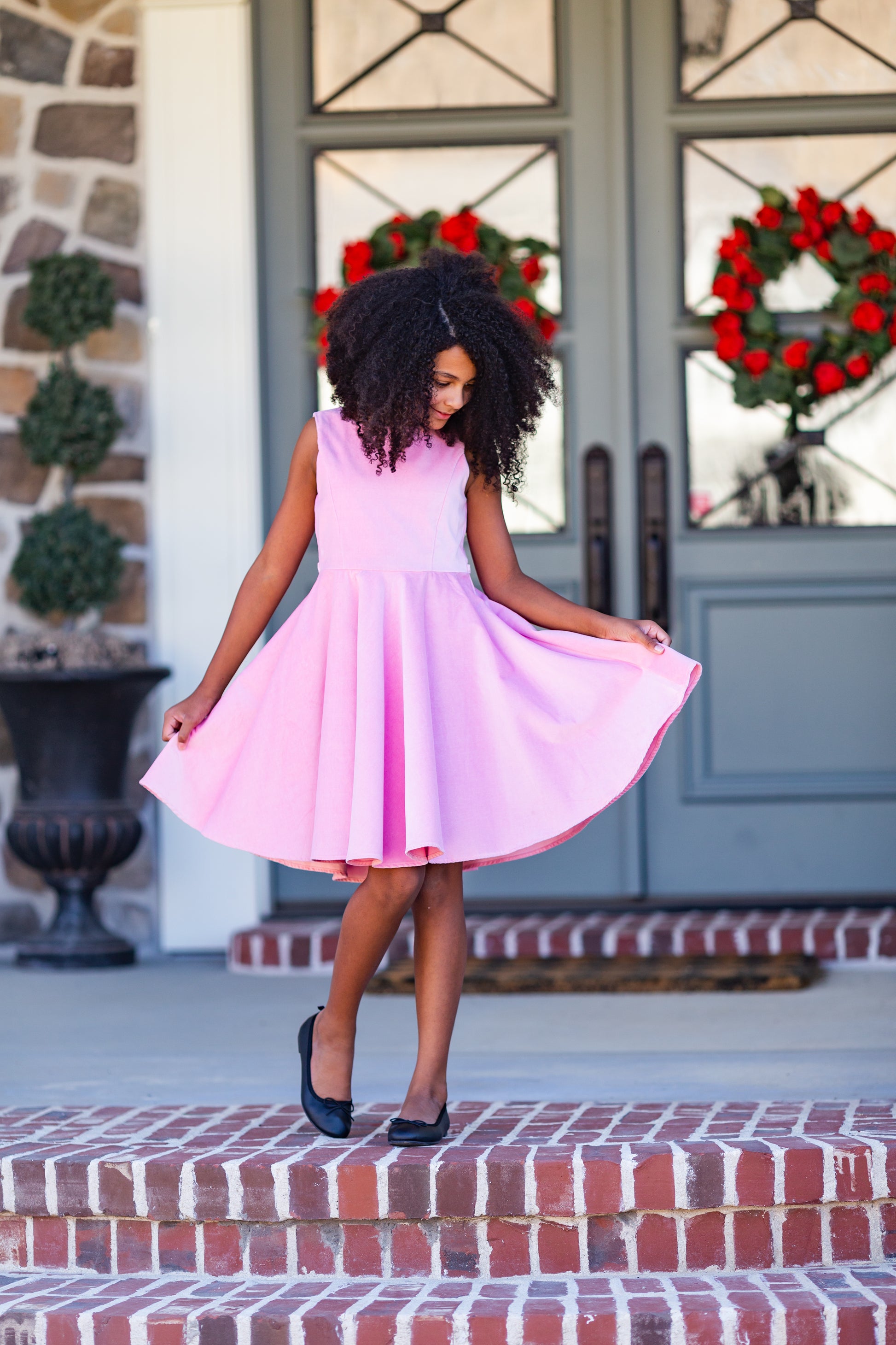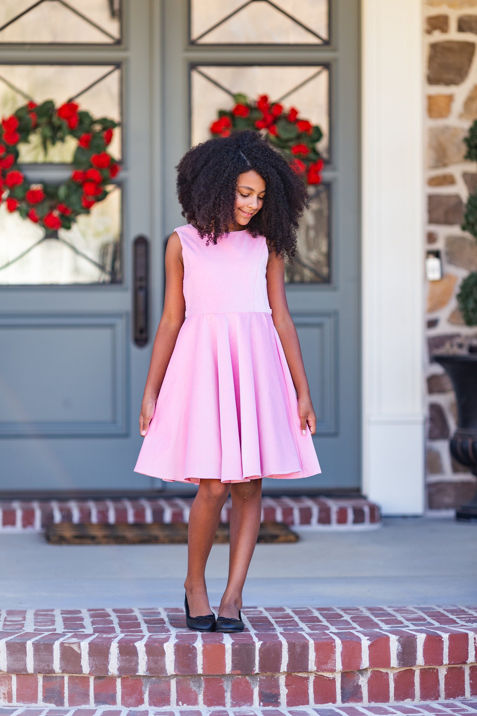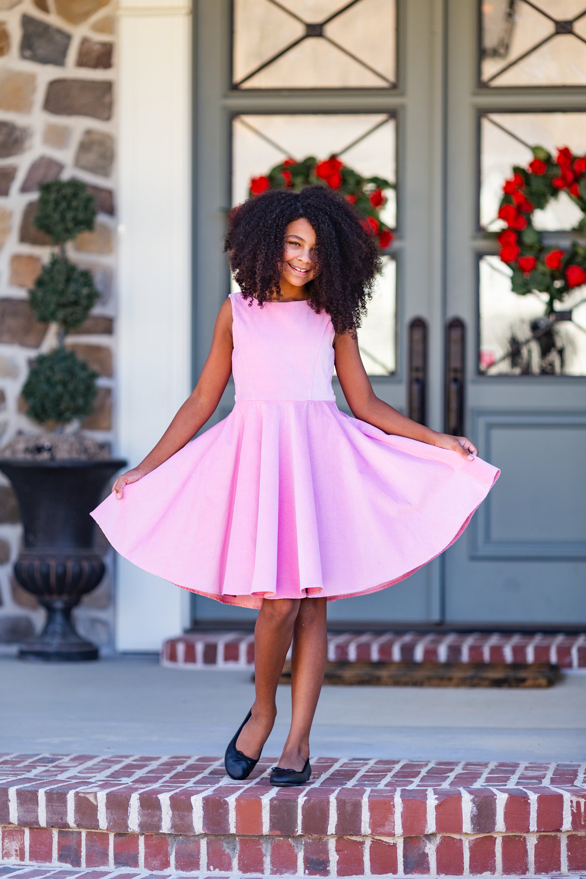 Girls love this classic flattering light pink velvet dress. It's the perfect party dress for any occasion or especially brilliant as a junior bridesmaid dress. Our "Special Occasion Dress" is fun and easy to dress up or down.